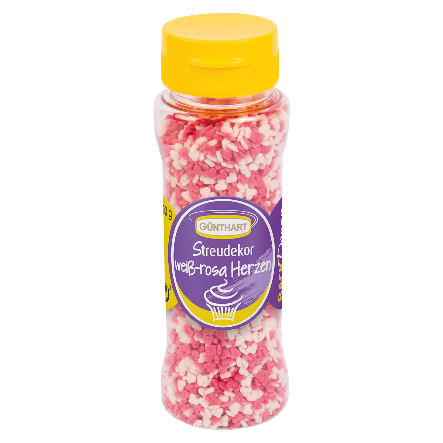 6 St. Streudekor, Zucker-Herzen klein, weiß-rosa, 100 g / St.