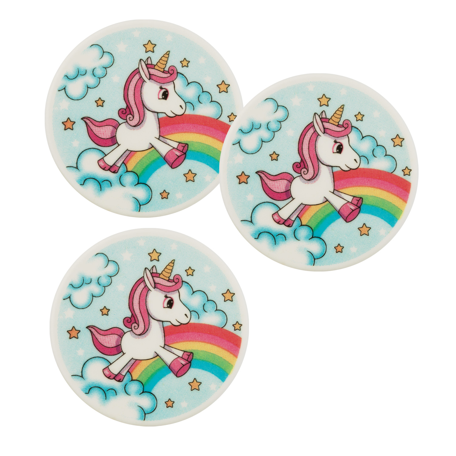 12 runde Dekor-Schilder mit Einhornprint zum Verzieren von Kuchen und Torten. Die kräftige Farben pink, blau, gold, grün und rot setzten das Einhorn gekonnt in Szene und machen jede Torte zum Highlight.