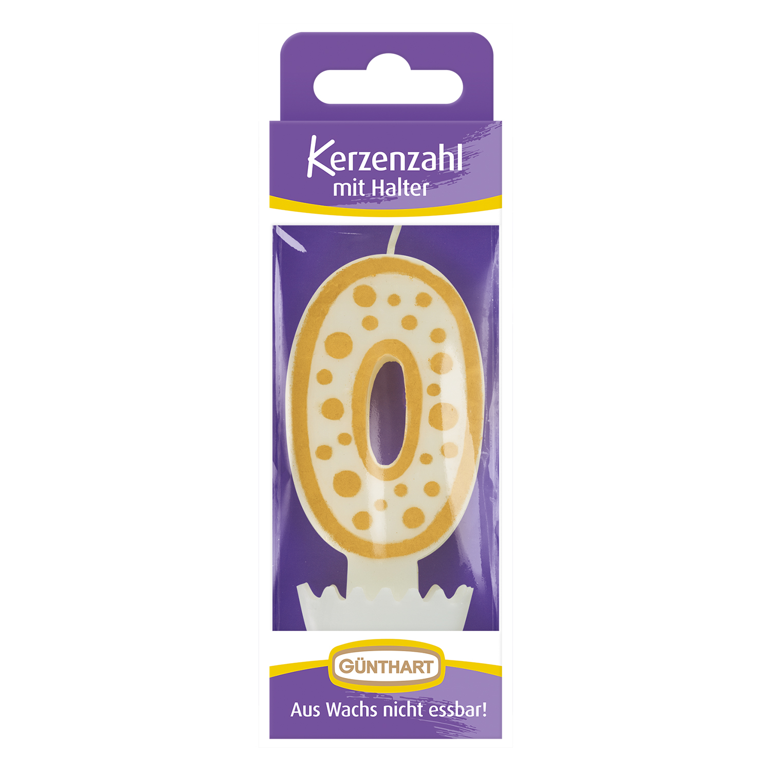 12 St. Wachskerzen-Zahlen mit Halter Nr. 0