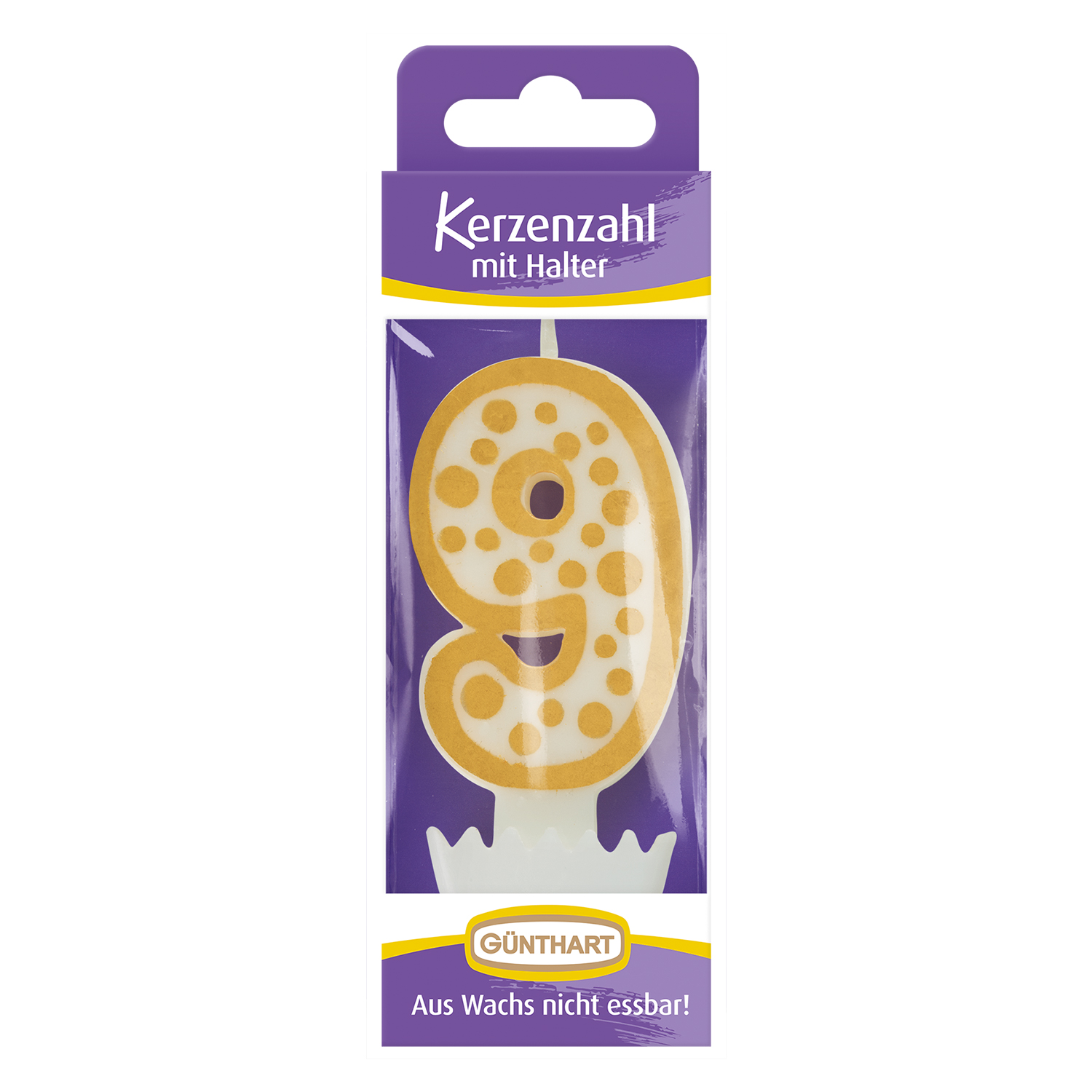 12 St. Wachskerzen-Zahlen mit Halter Nr. 9