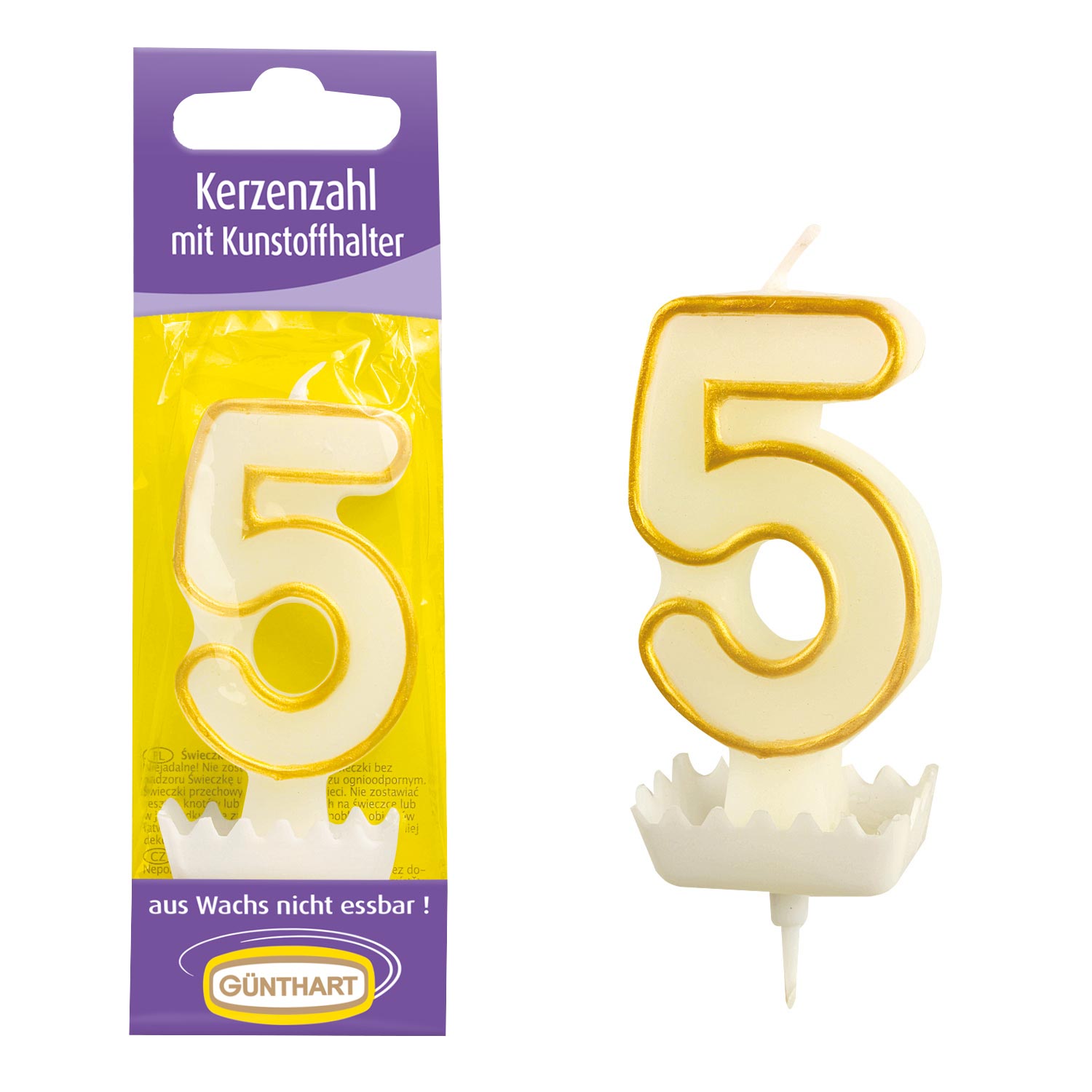 15 St. Wachskerzen-Zahlen mit Halter Nr. 5