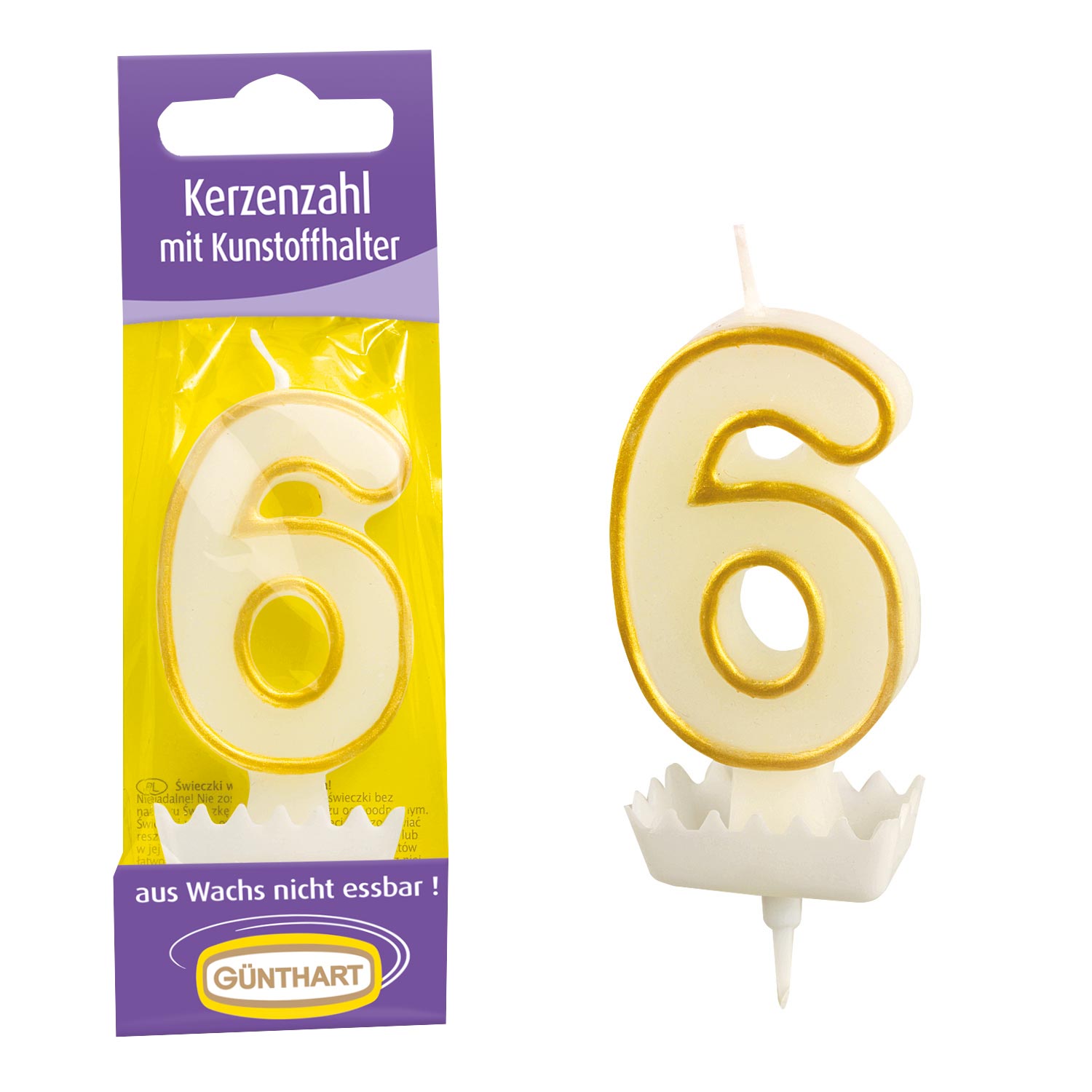 15 St. Wachskerzen-Zahlen mit Halter Nr. 6
