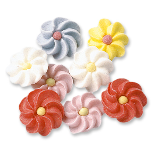 Mit diesen kleinen, bunten Margeriten lässt sich nicht nur eine Geburtstagstorte dekorieren, frühlingscupcakes oder Sahne-Törtchen oder andere Desserts können Sie auch hervorragend mit diesen Blümchen dekorieren. Auch kann man die Blümchen als Tischdekoration für den Geburtstagstisch verwenden. Die Margeriten bestehen aus einer hochwertigen Zuckermasse.