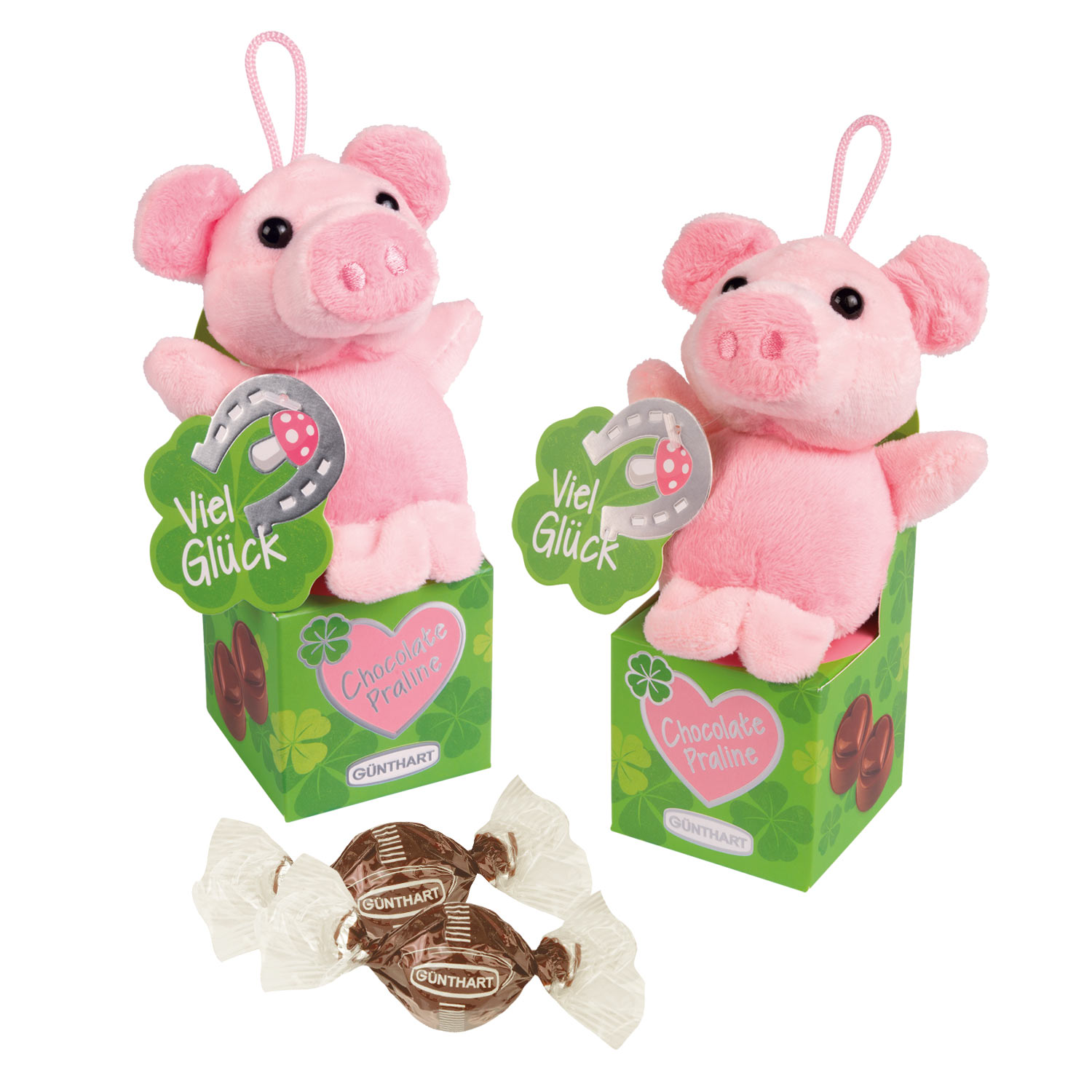 Pralinen: Vollmilchschokolade gefüllt mit Nougatcreme (43,5%).
