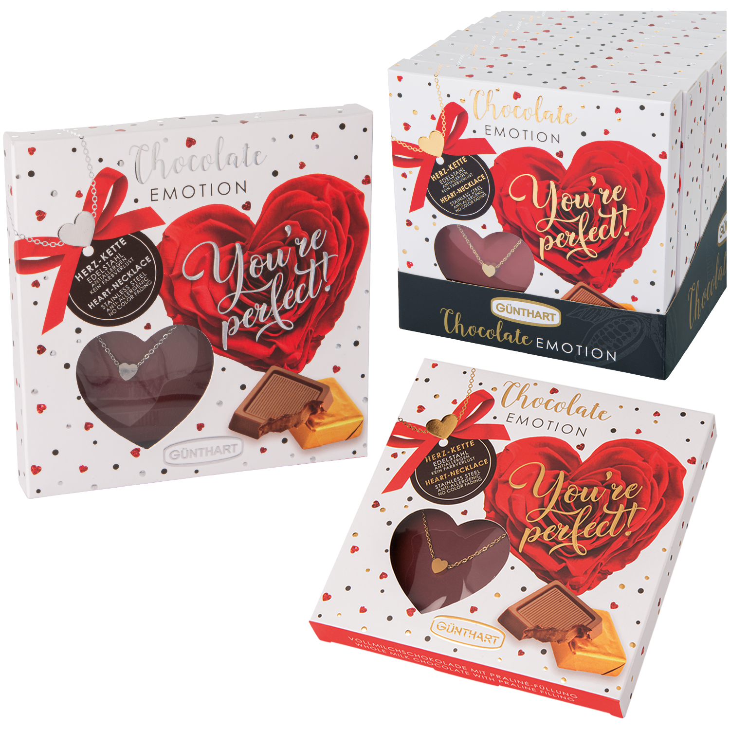 12 St. Chocolate Emotion Präsent mit Herz-Kette, sortiert