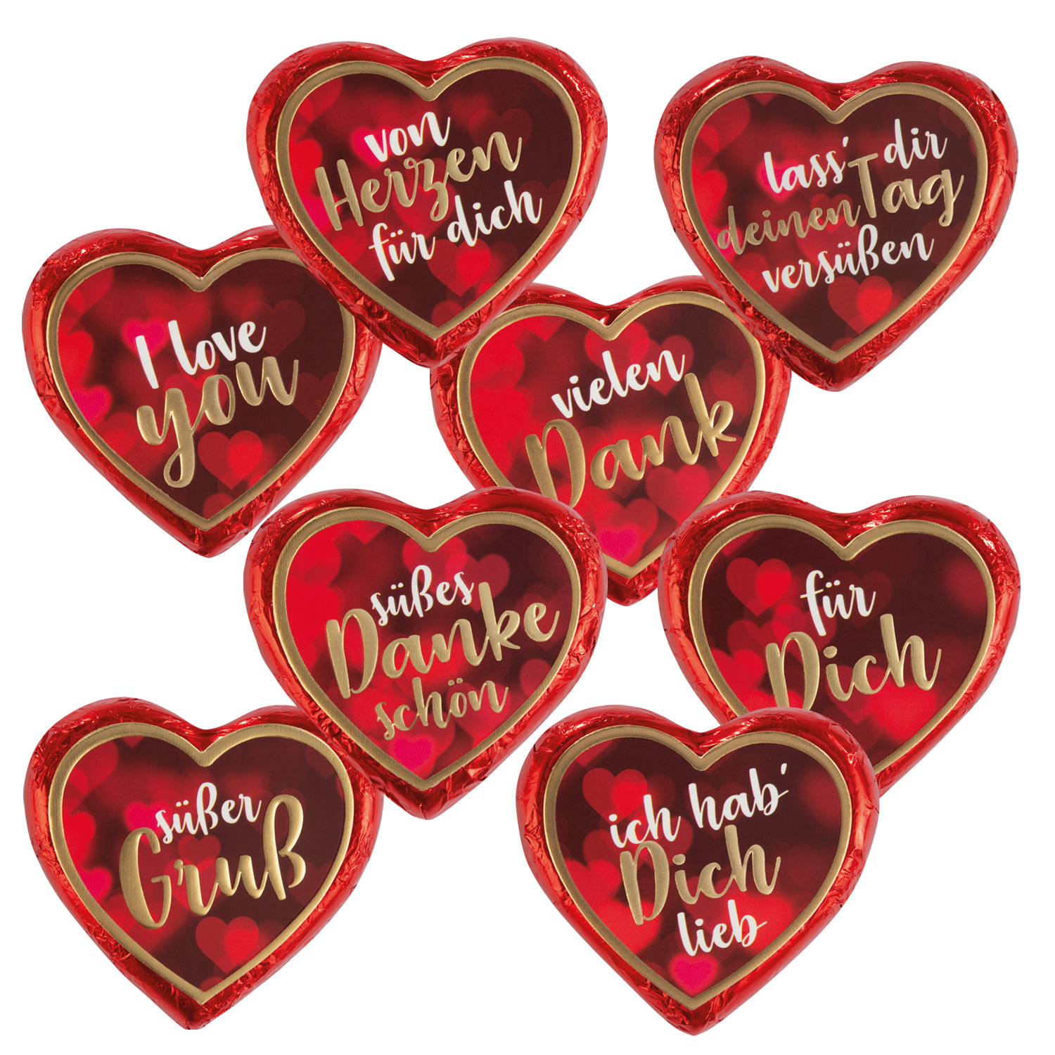 40 St. Große Pralinenherzen rot mit Sprüchen, sort.
