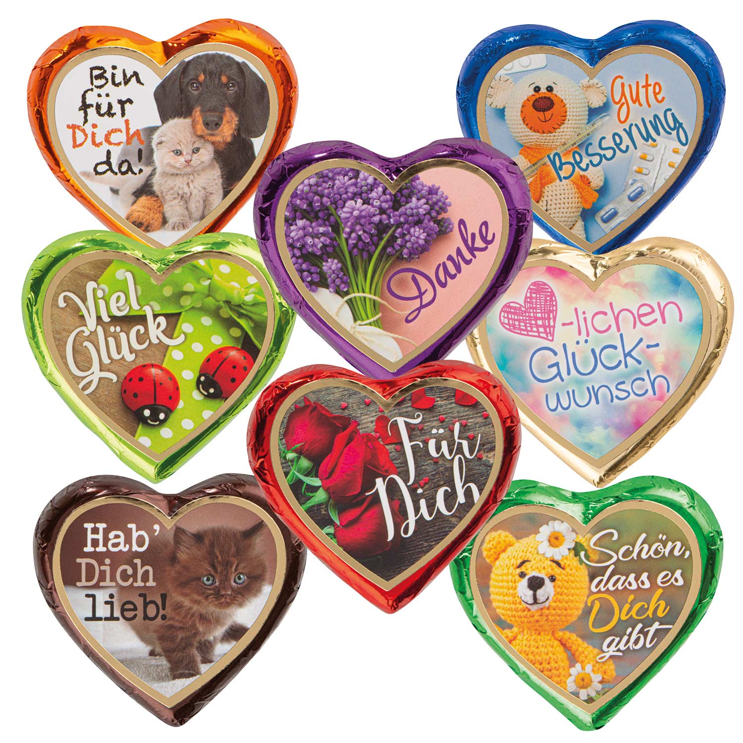 Pralinen: Vollmilchschokolade gefüllt mit Nougatcreme (43,5%).