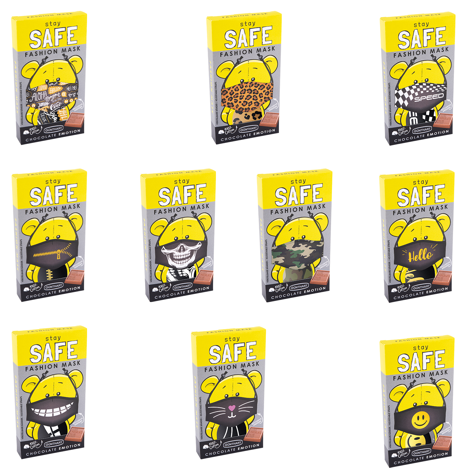 10 St. Pralinenpräsent mit Stoffmaske, sortiert