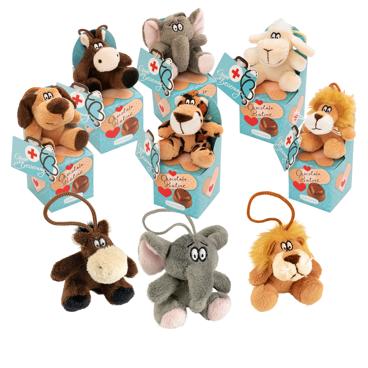 Pralinen: Vollmilchschokolade gefüllt mit Nougatcreme (43,5%).