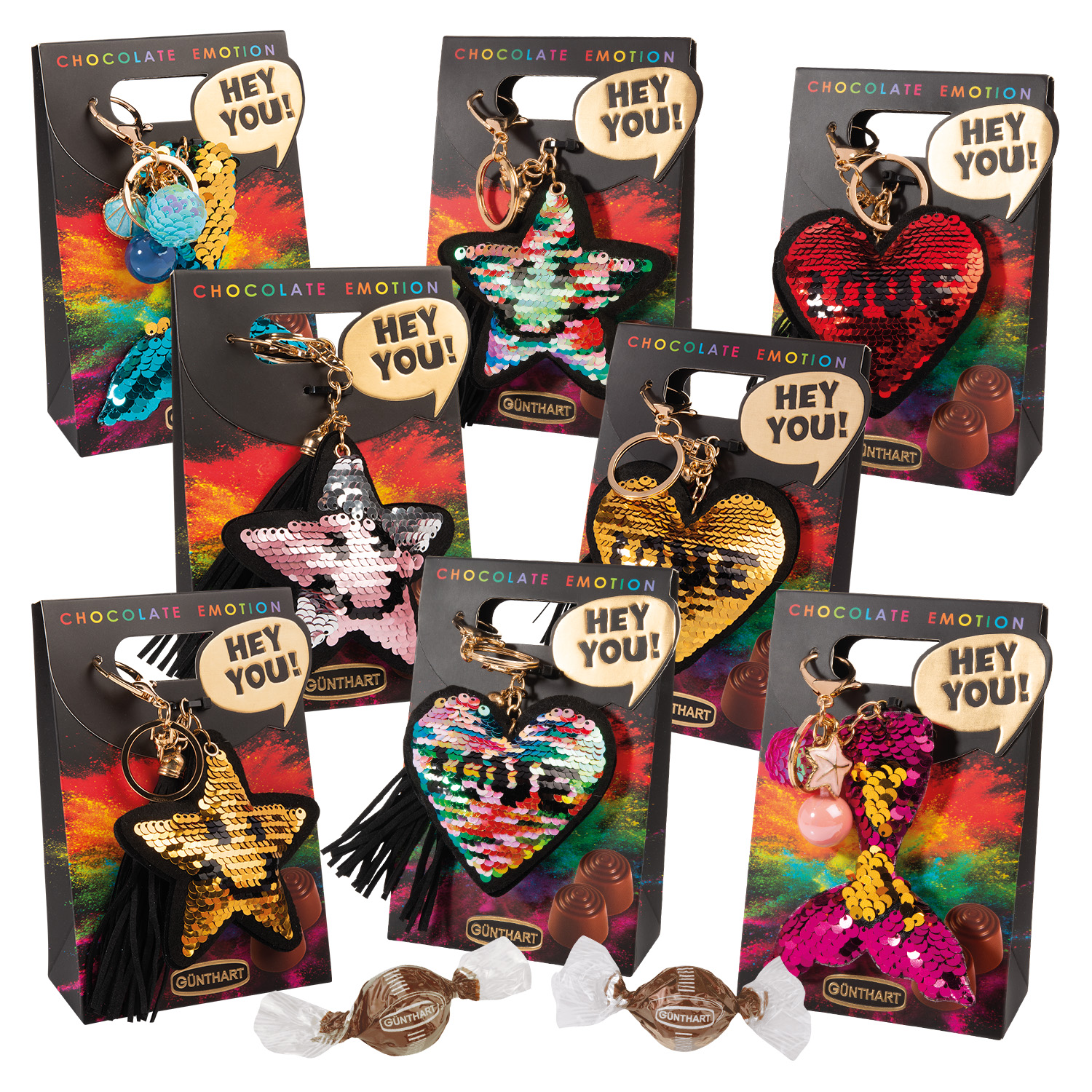 Pralinen: Vollmilchschokolade gefüllt mit Nougatcreme(43,5%).