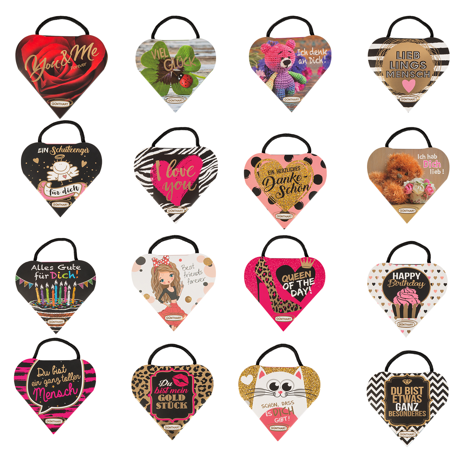 16 St. Emotion-Herz mit Sprüchen, sort.