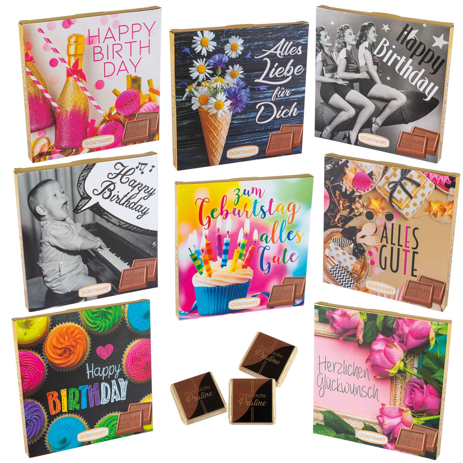 Pralinen: Vollmilchschokolade gefüllt mit Nougatcreme (43,5%).