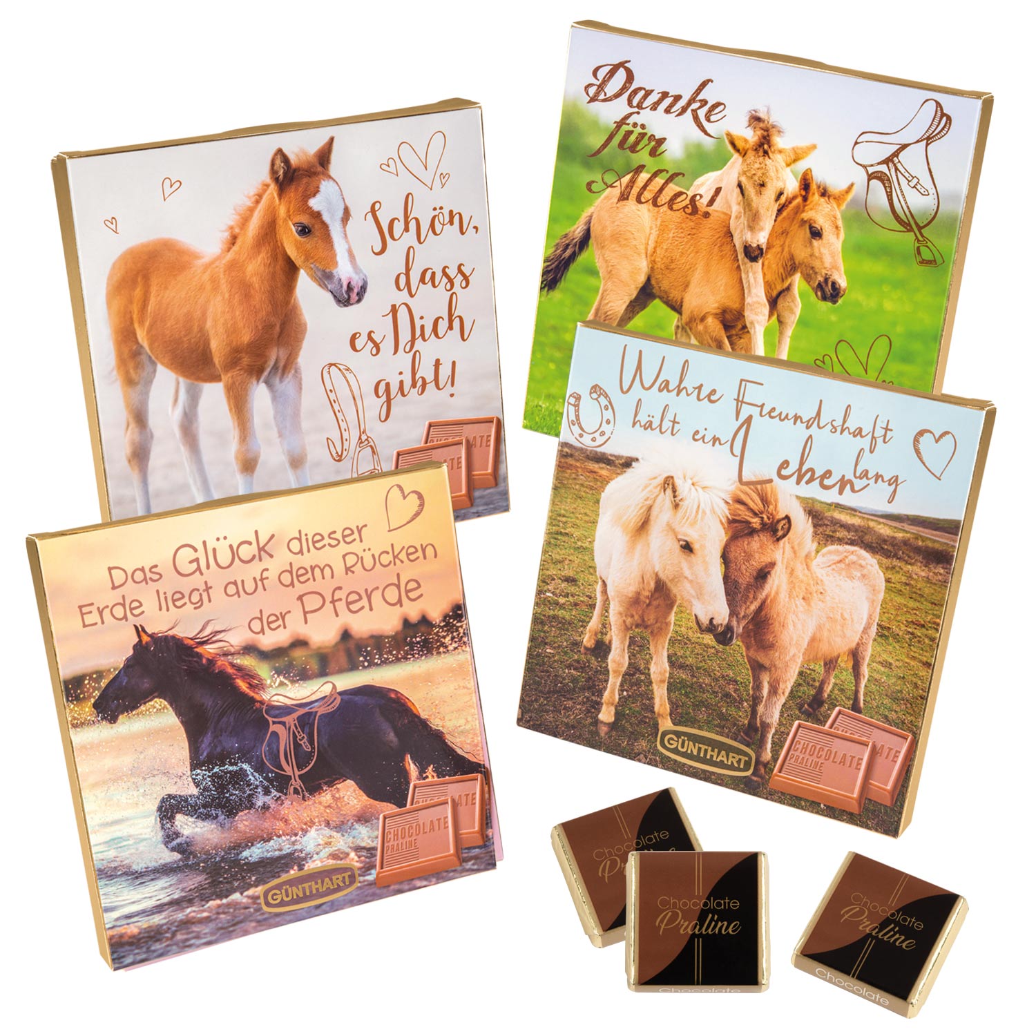 Pralinen: Vollmilchschokolade gefüllt mit Nougatcreme (43,5%).