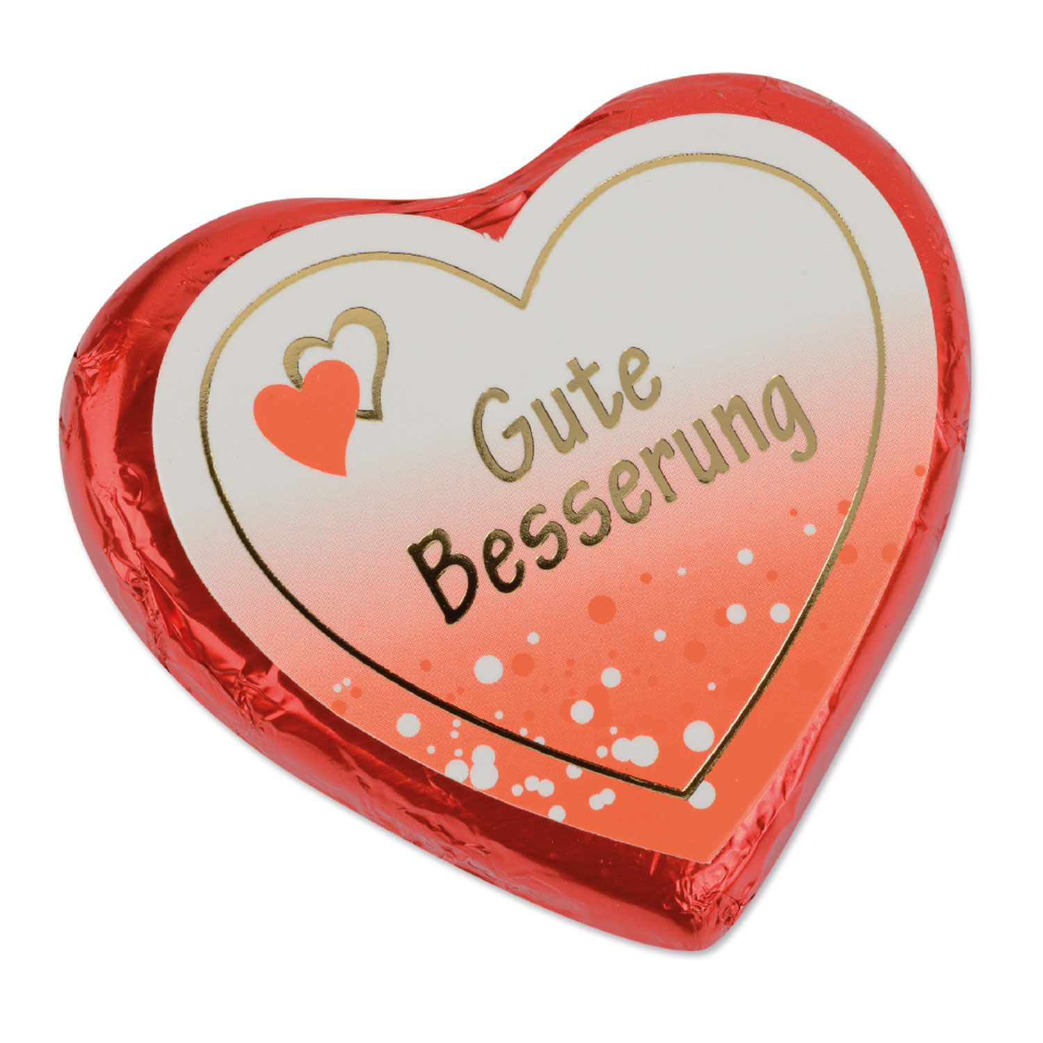 Pralinenherzen im roten Einwickler. Ideal für Genesungswünsche z.B. an einem Krankenhaus Kiosk. Abgedruckt ist auf jedem der 40 Herzen der Spruch - Gute Besserung -. Hinweis: Bitte beachten Sie, dass bei Temperaturen über 25 Grad der Versand von Schokoladenprodukte aus Qualitätsgründen nicht möglich ist. Im Einzelfall werden wir entscheiden, ob die Ware versendet werden kann.