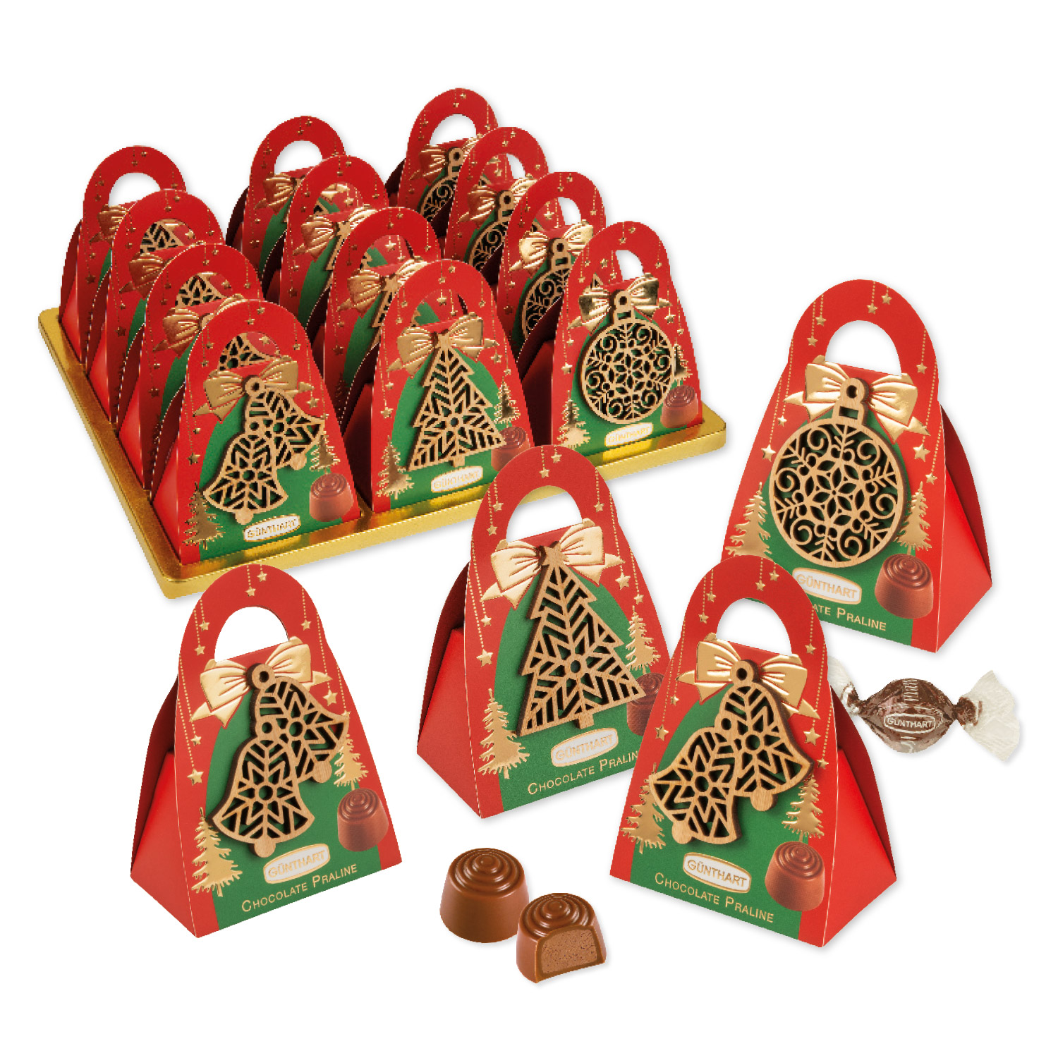 | Verkehrsbezeichnung: | Pralinen: Vollmilchschokolade gefüllt mit Nougatcreme (43,5%). |