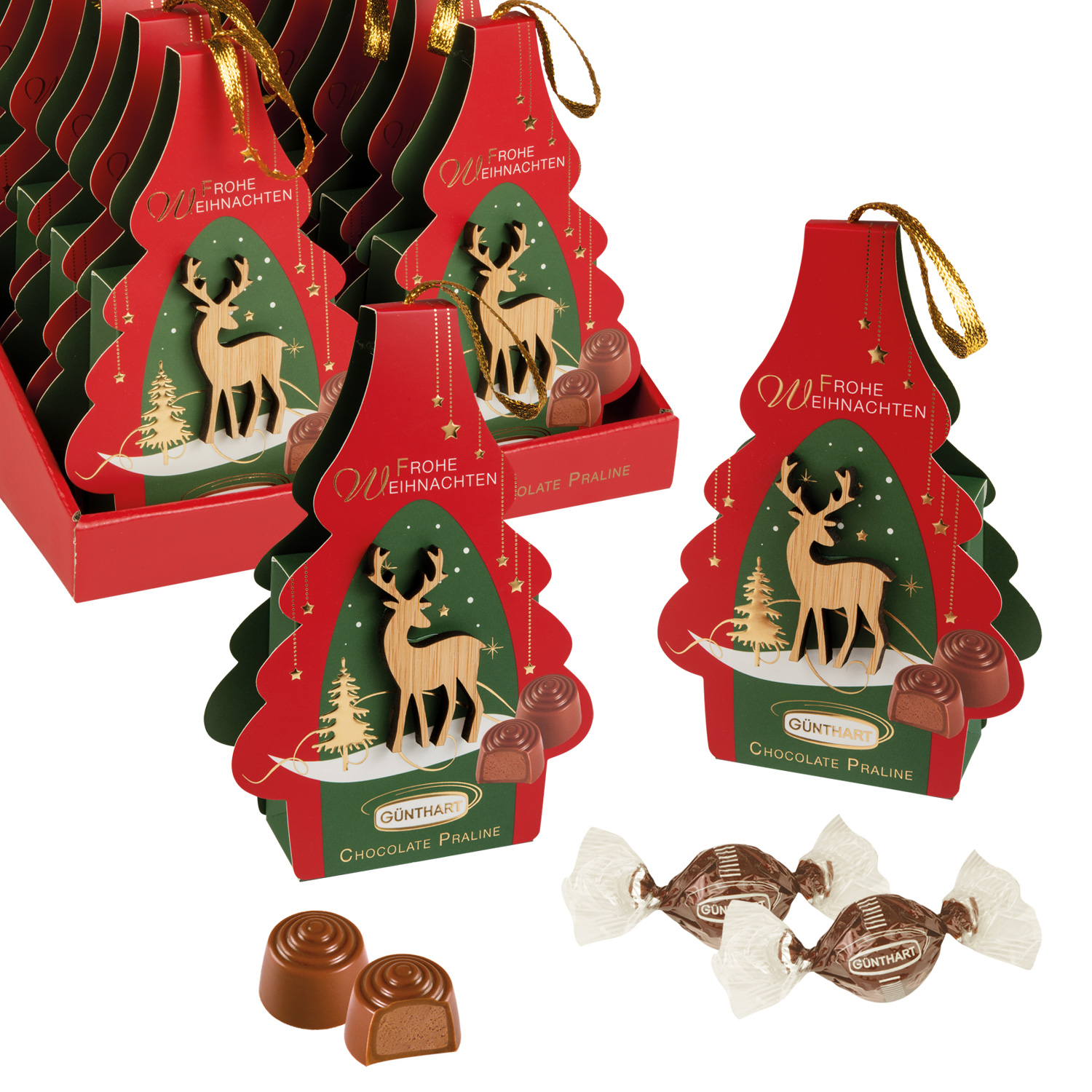 | Verkehrsbezeichnung: | Pralinen: Vollmilchschokolade gefüllt mit Nougatcreme (43,5%). |