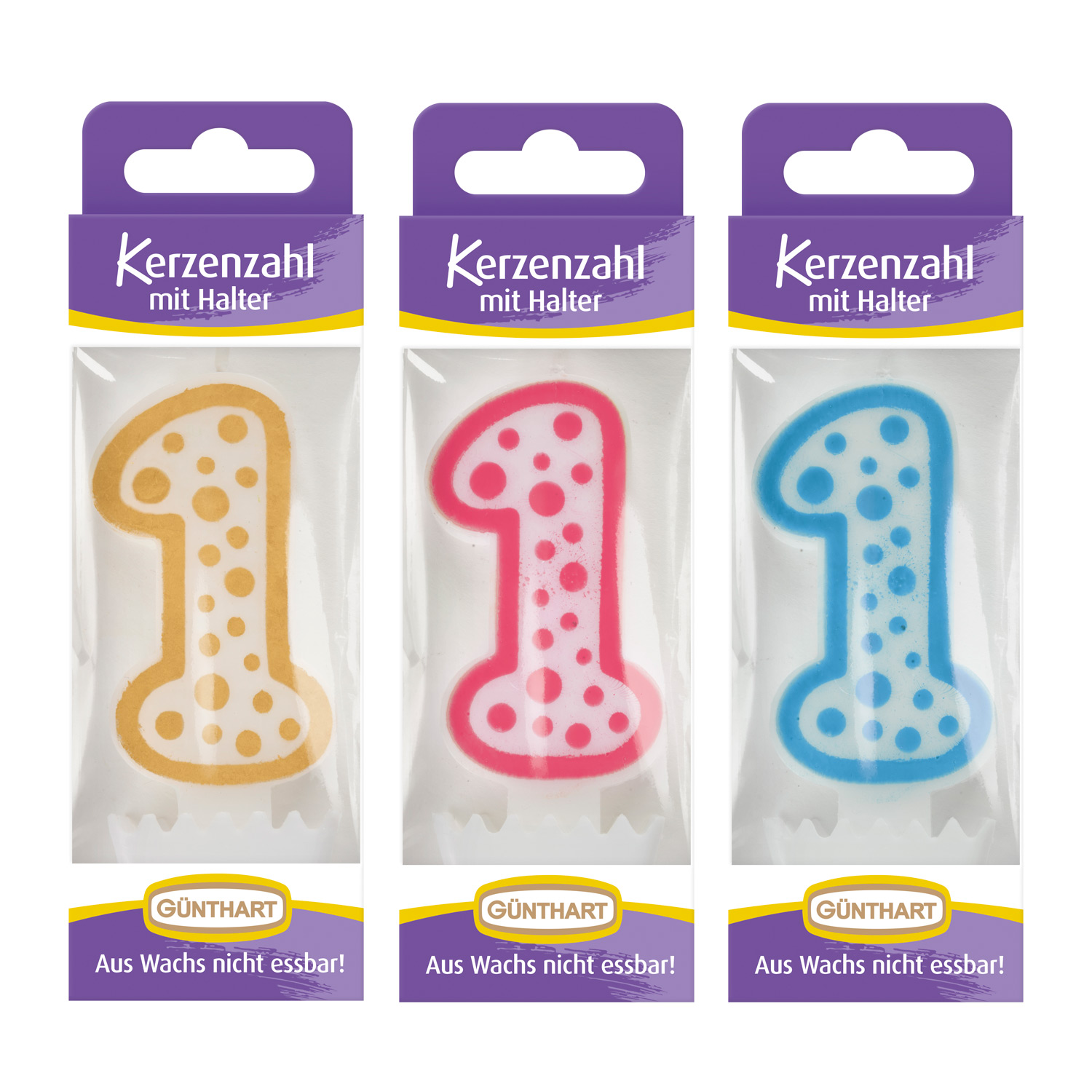 12 St. Wachskerzen-Zahlen mit Halter Nr. 1