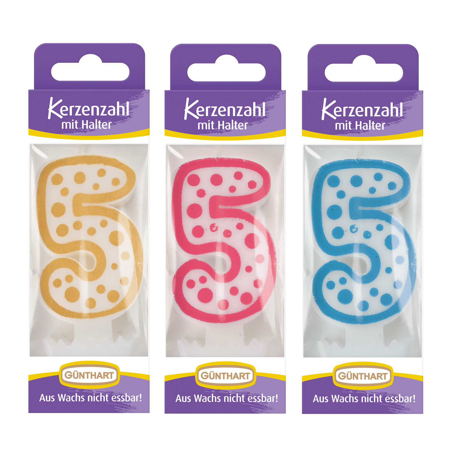 12 St. Wachskerzen-Zahlen mit Halter Nr. 5