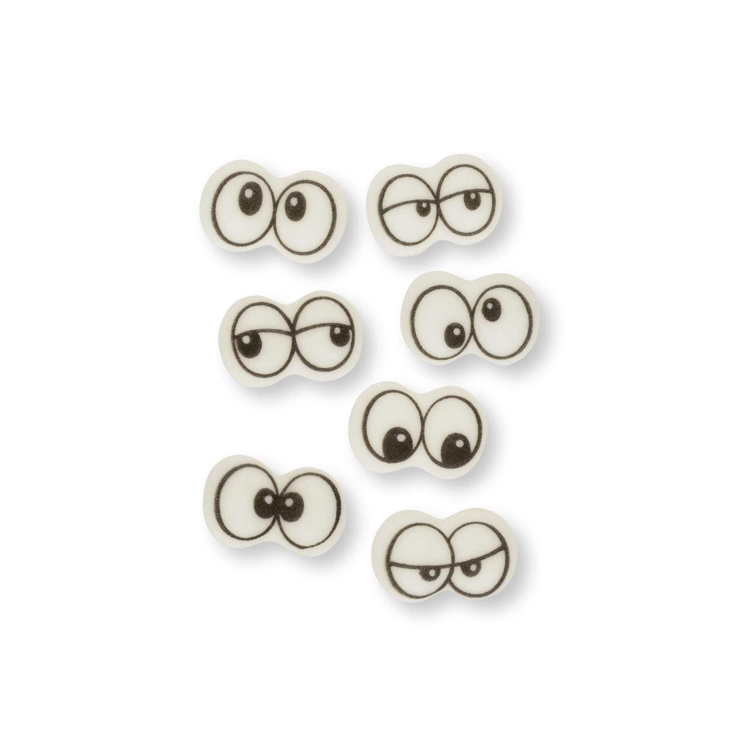 Zutaten: Zucker, Verdickungsmittel E 414 aufgeschlossenes MILCHEIWEISS, Säuerungsmittel E 330, Feuchthaltemittel E 422, Emulgator E 322, Farbstoffe: E 132, E 171, E 172. Kann Spuren von Eiern enthalten.