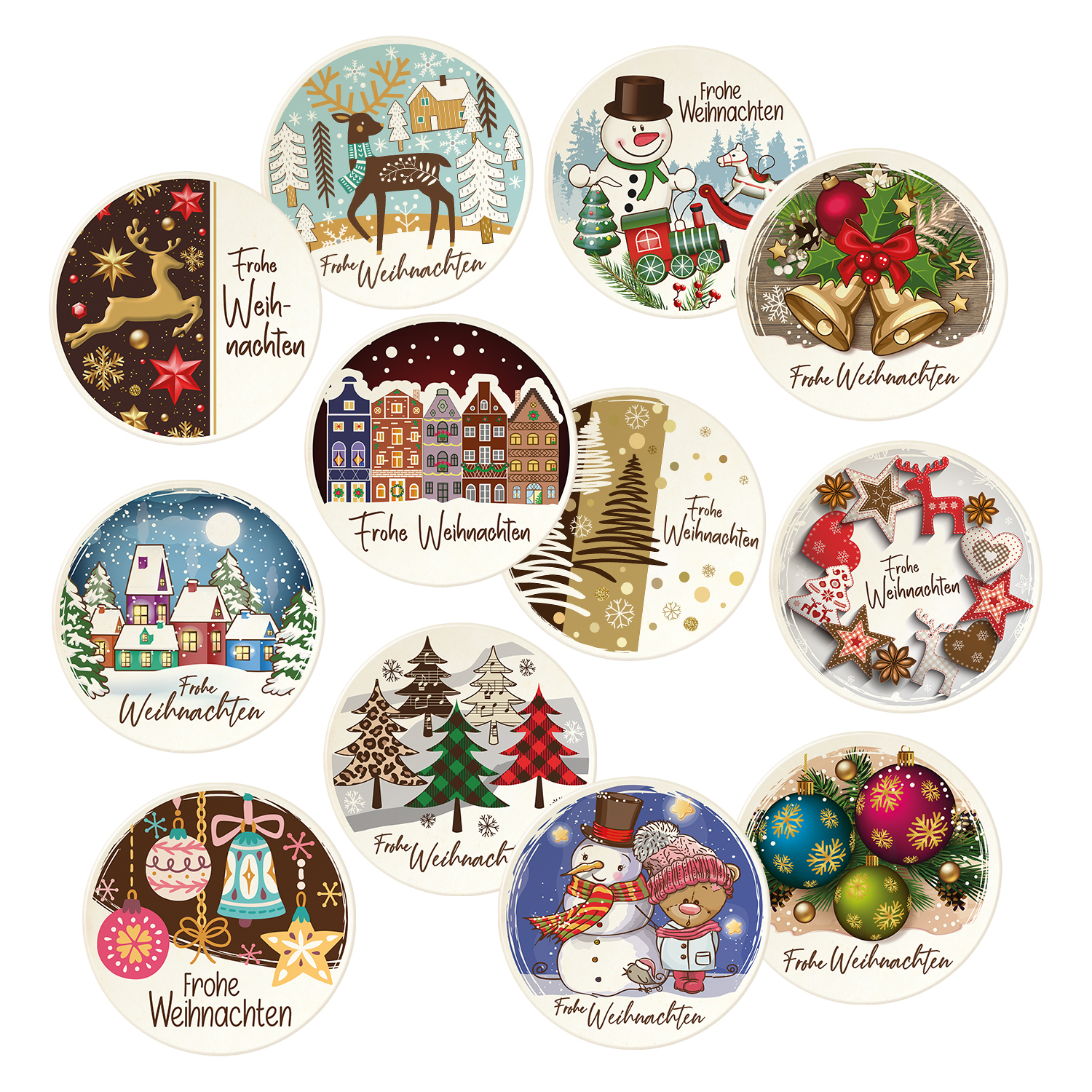 12 St. Dekorschilder Frohe Weihnachten , sortiert