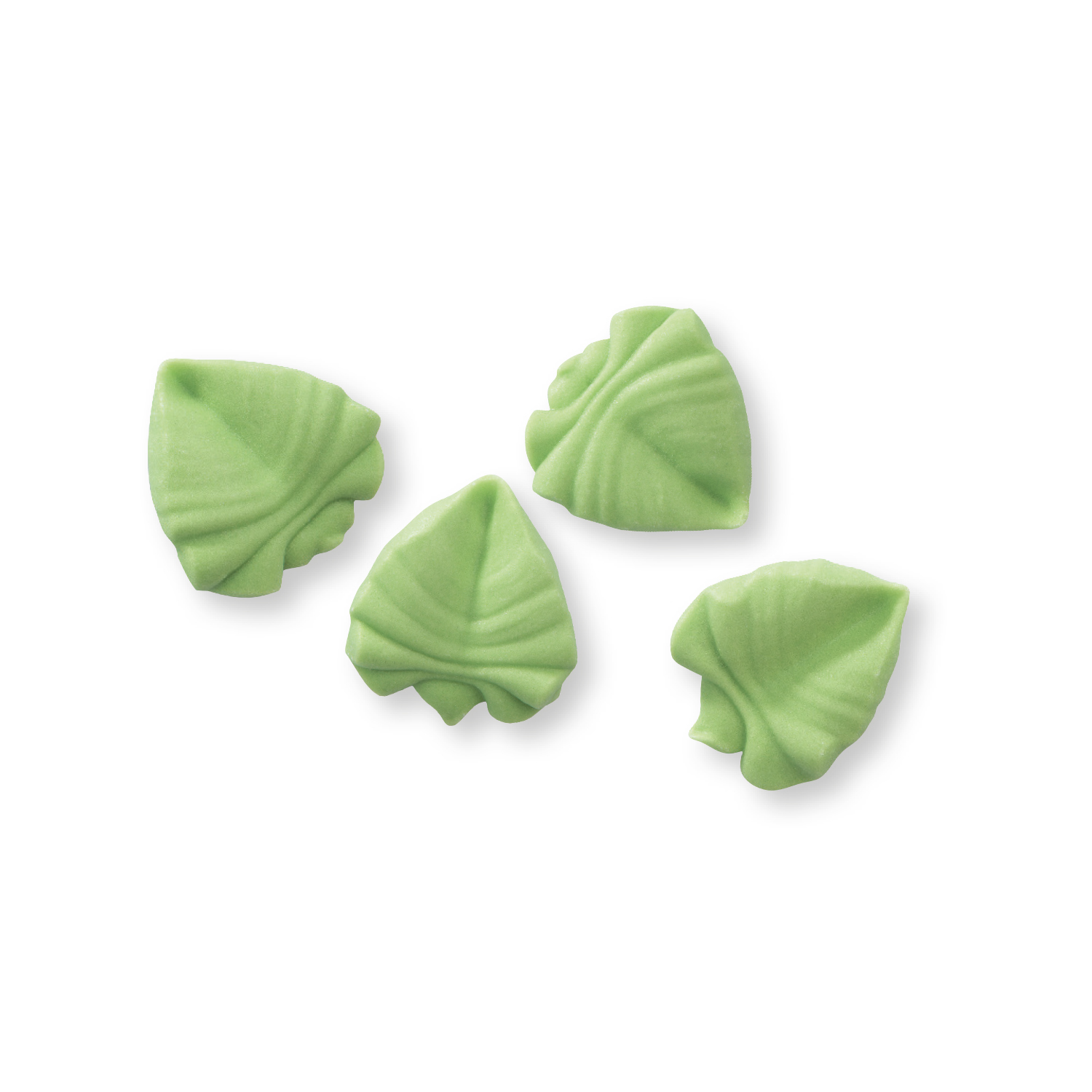 Die grünen Zuckerblätter sind durch ihre Konturen primär Rosenblättern nachempfunden. Sie bestehen aus hochwertiger Zuckermasse und lassen sich mit jeder Art von Rose aus unserem Sortiment gut kombinieren.