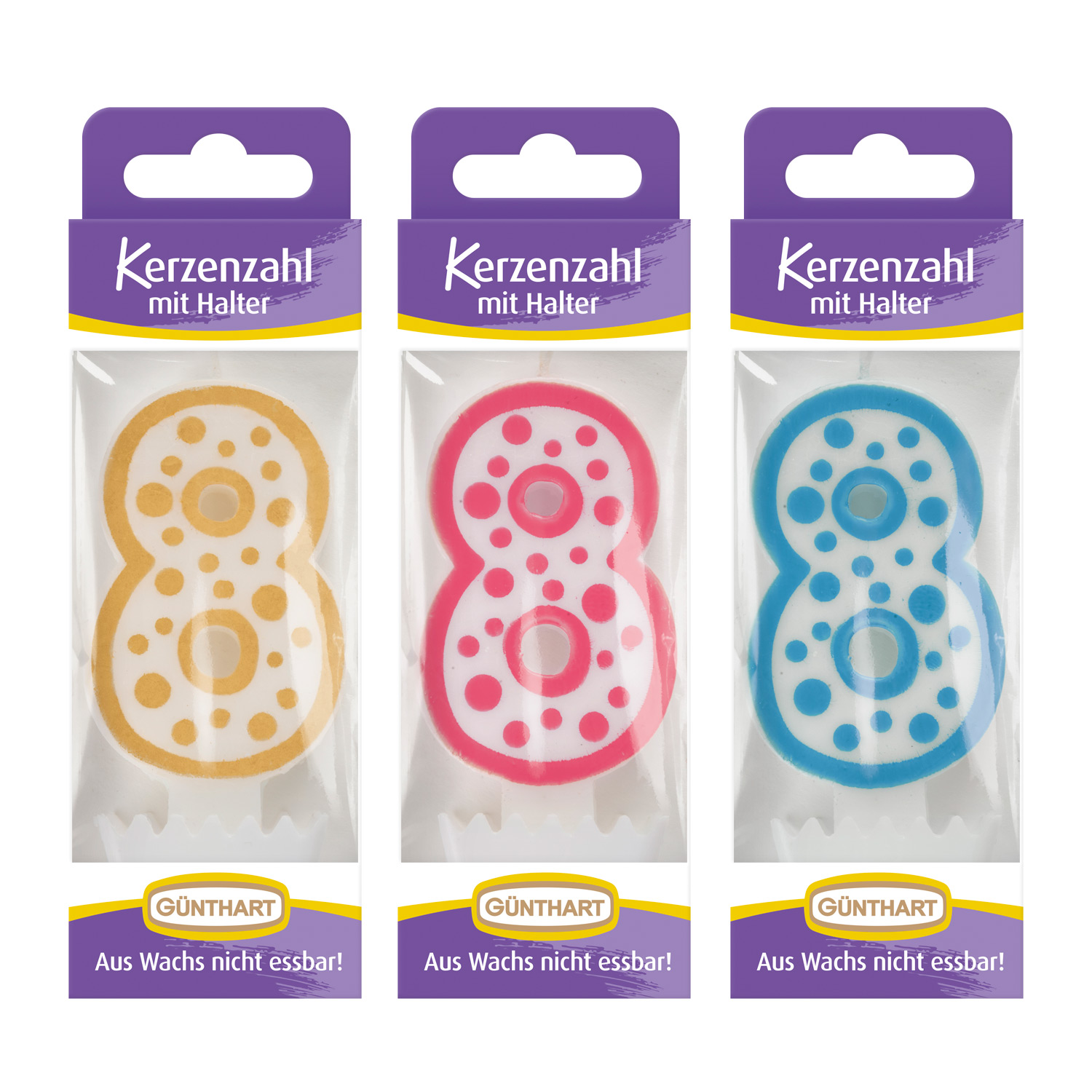 12 St. Wachskerzen-Zahlen mit Halter Nr. 8