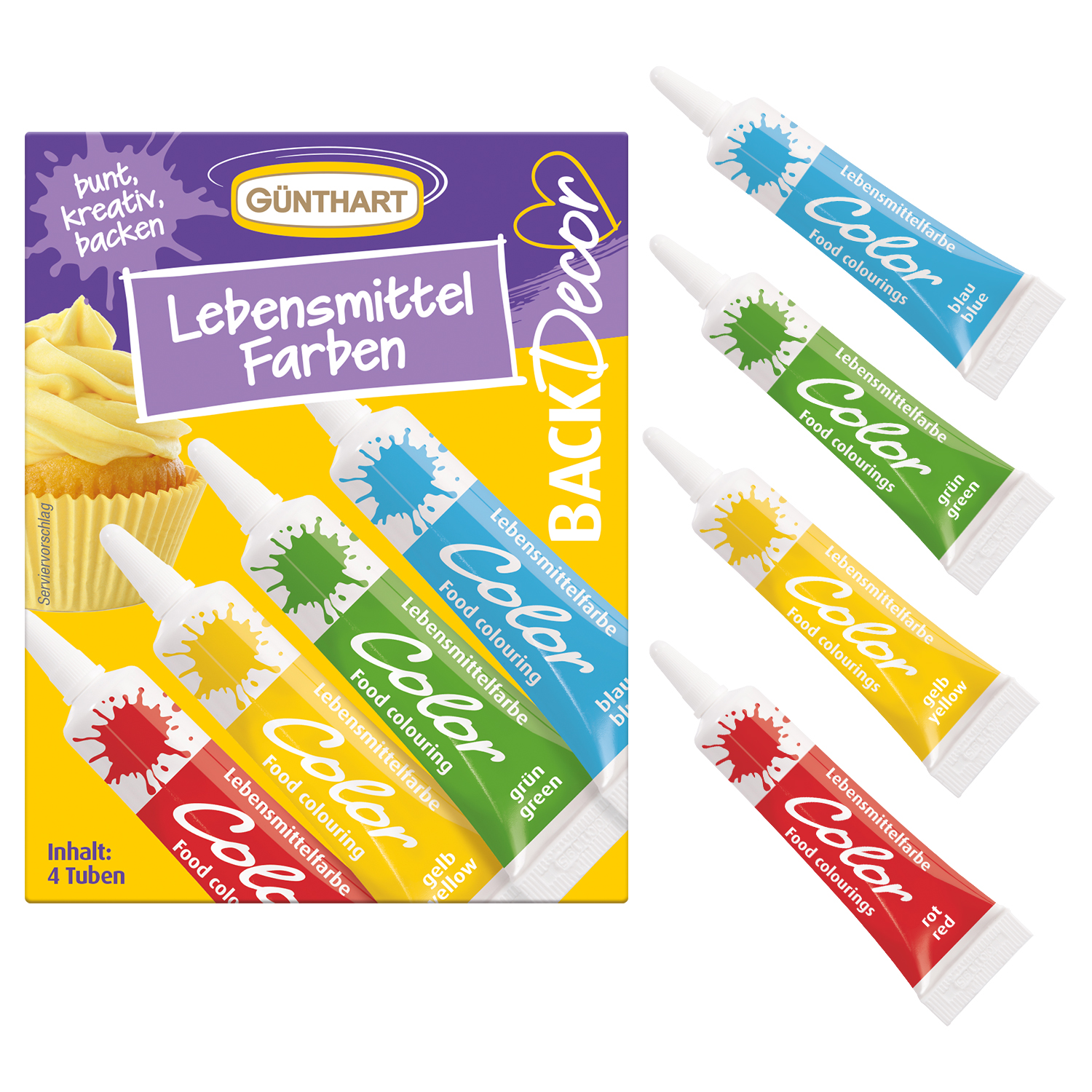 12 St. Lebensmittelfarben rot, gelb, grün, blau