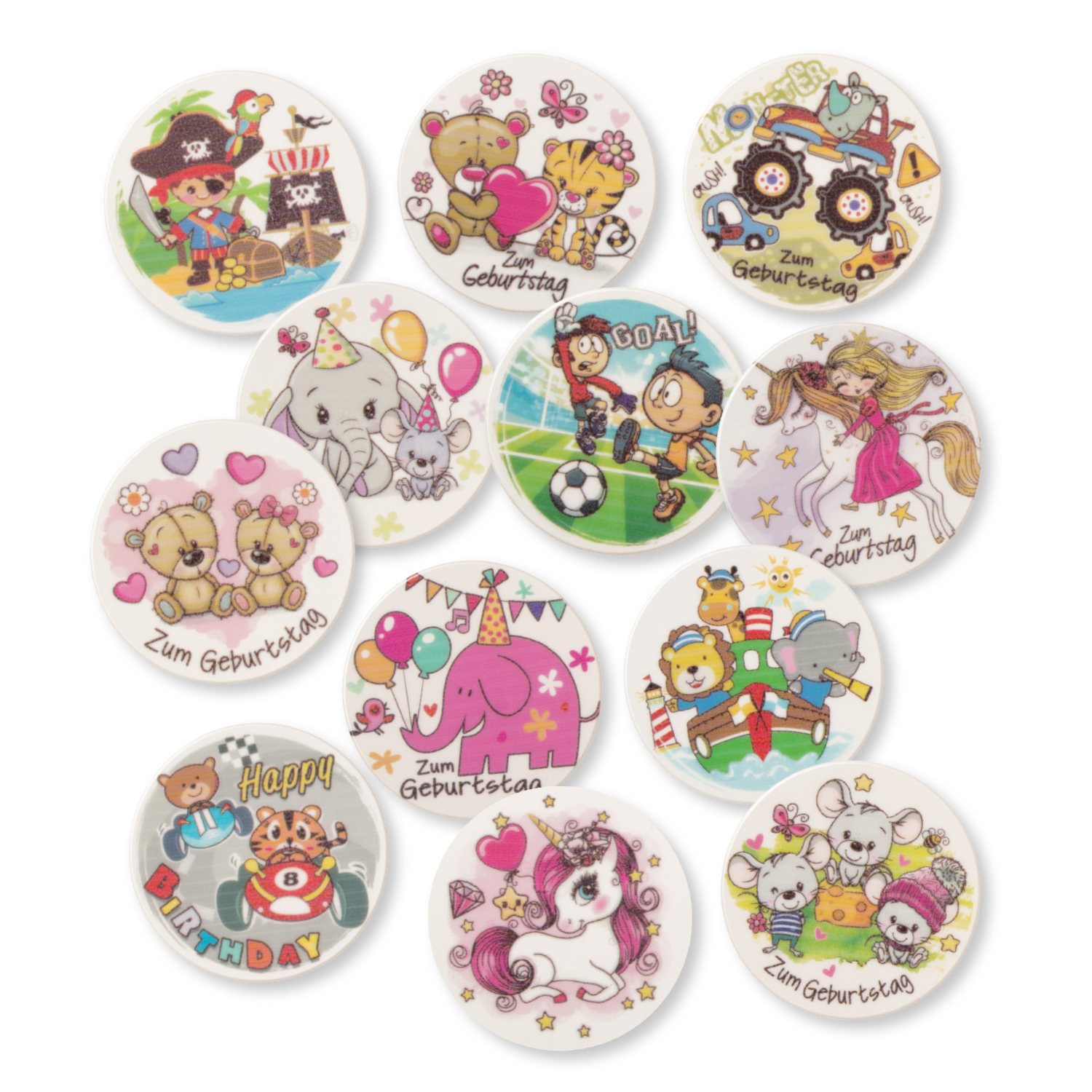 12 runde Dekor-Schilder zum Verzieren von Kuchen und Torten.
