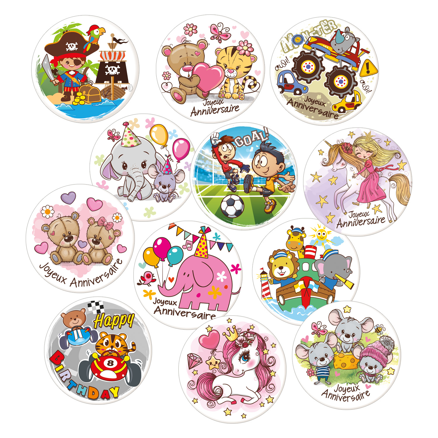 12 St. Dekorschilder Joyeux Anniversaire , Französisch