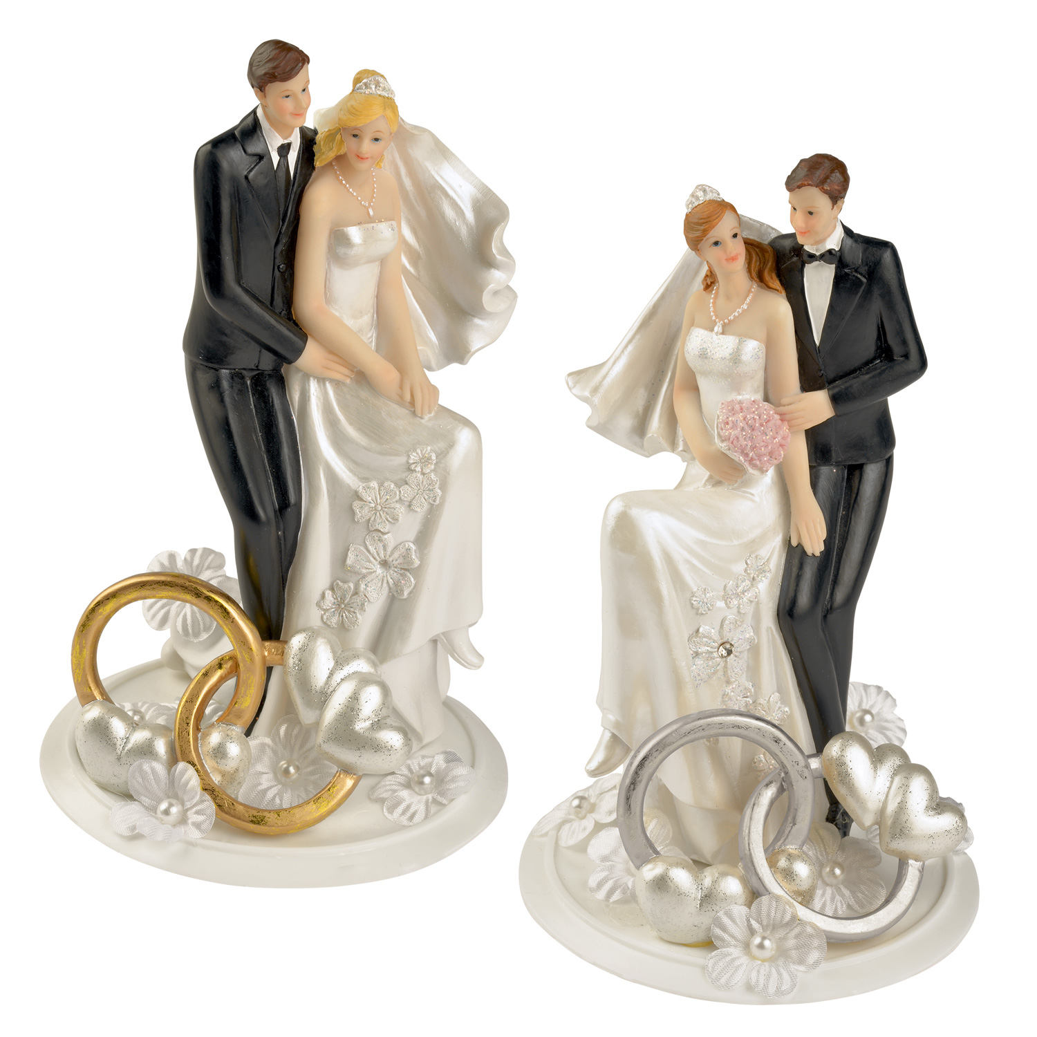 2 St. Polyresin-Brautpaaraufsatz mit Trauringen und Blumendekoration
