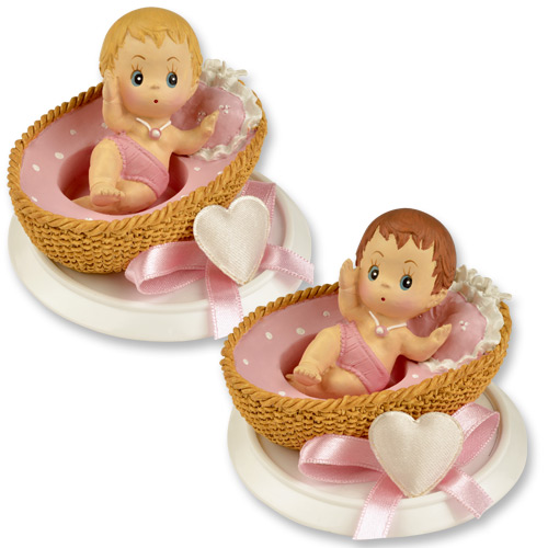 4 St. Kleine Poly-Aufsatz Baby im Körbchen rosa